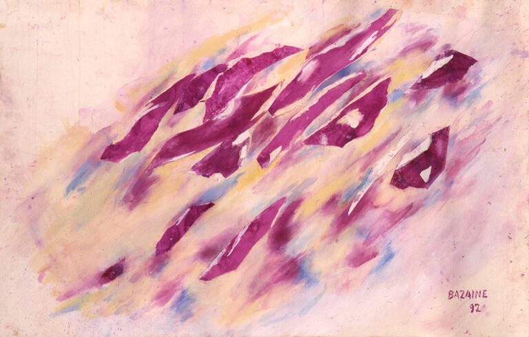 Pendant la guerre, Bazaine est passé de la figuration à l’abstraction, une abstraction non pas géométrique, comme celle qu’a abandonnée Hélion, mais plus proche de la nature, plus précisément de l’énergie qui donne vie à la nature et aux éléments, nous relie à eux et nous place dans le cycle d’un monde en devenir dans sa mobilité même.
